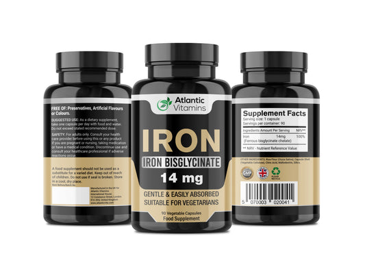Iron Vegetarian 90 Capsules 14mg - Iron Bisglycinate - Gentle and Easily Absorbed - Supports Immune System, Improve Energy Level - Atlantic Vitamins - UK Made